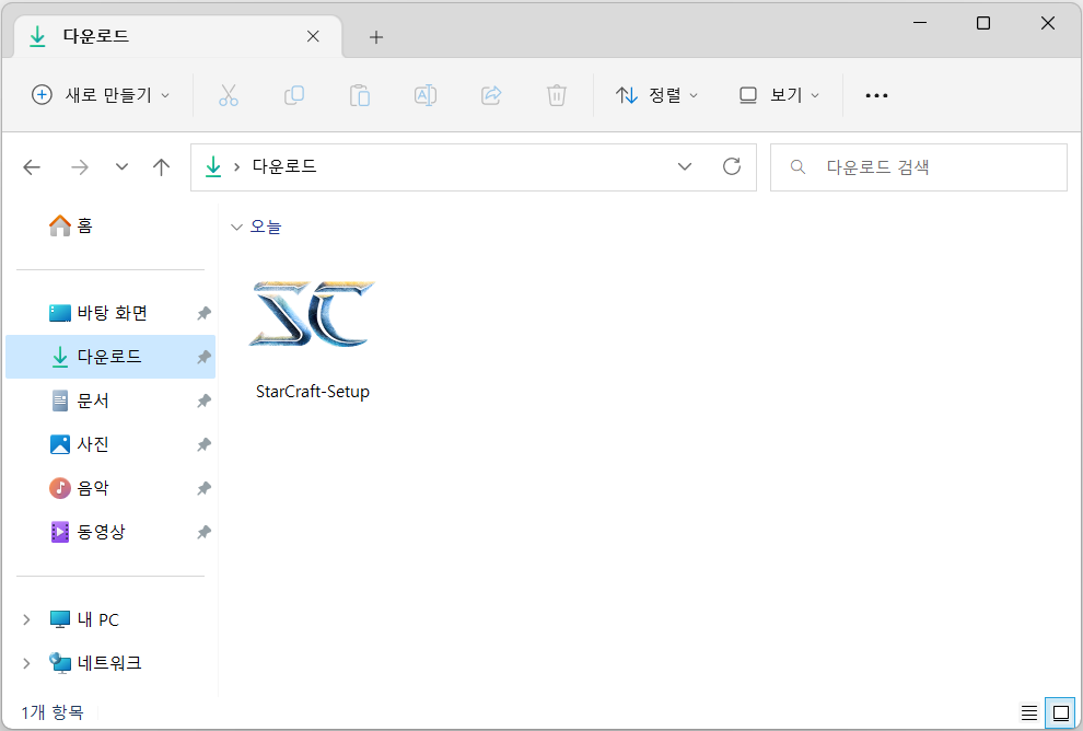 2. 다운로드 폴더에 스타크래프트 설치파일이 있습니다.