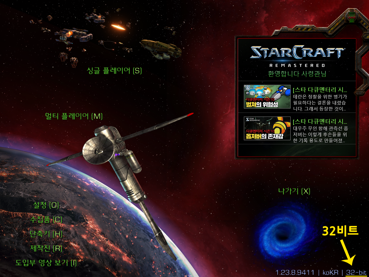 스타크래프트 리마스터 32비트 실행됩니다.