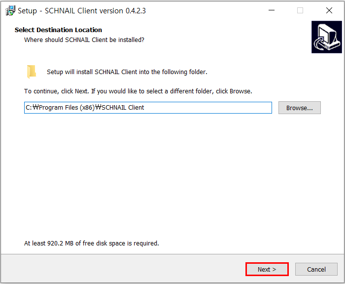 SCHNAIL Client Installer v0.4.2.3 실행해서 설치합니다.