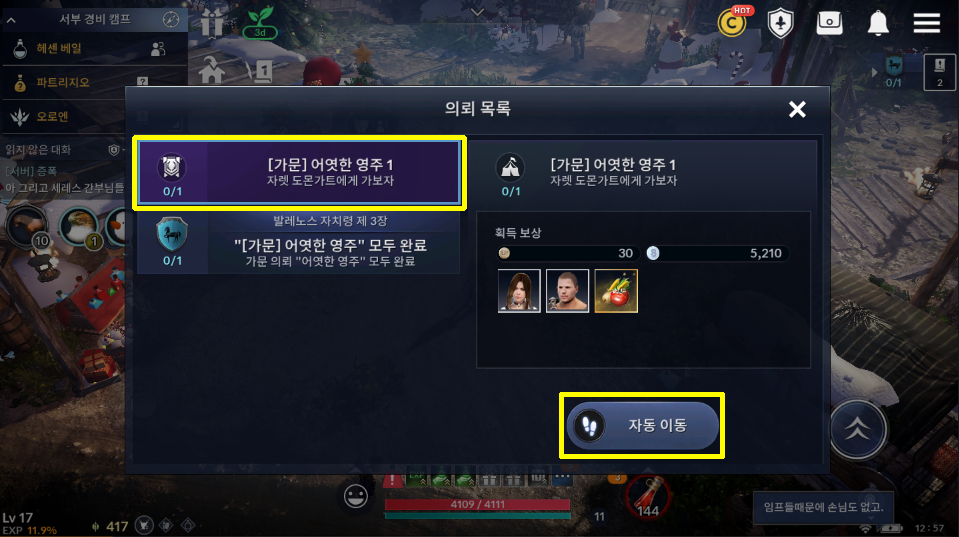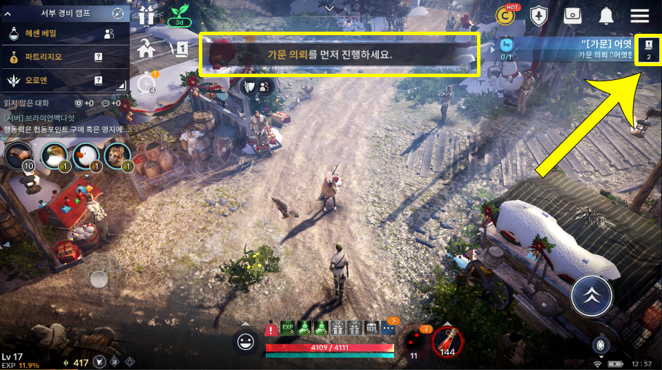 [검은사막 모바일 퀘스트] 가문 의뢰를 먼저 진행하세요 해결 방법
