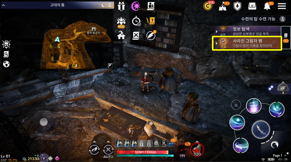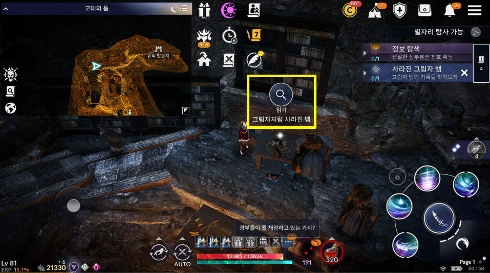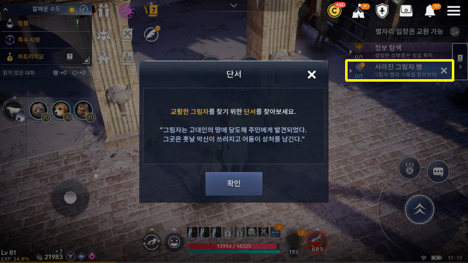 [검은사막 모바일 퀘스트] 사라진 그림자 뱀 - 그림자 뱀의 기록을 찾아보자