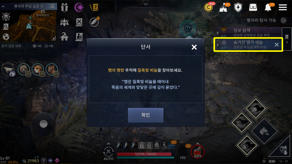 [검은사막 모바일 퀘스트] 숨겨진 뱀의 비늘 - 칠흑빛 비늘을 찾아보자