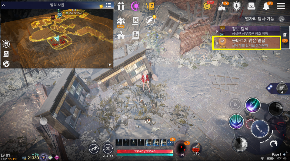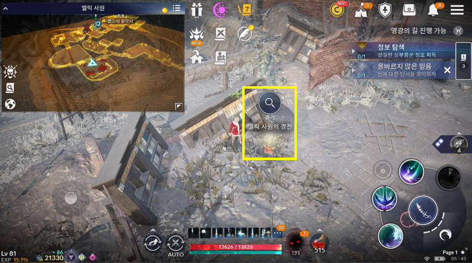 '엘릭 사원의 경전' 줍기하면 퀘스트 끝입니다. 고생하셨습니다~