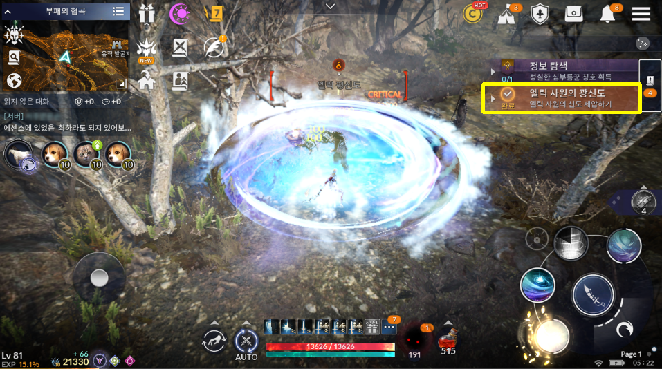 엘리언 영역/ 하둠 영역 상관없이 5분 정도 사냥하면 퀘스트 완료됩니다.