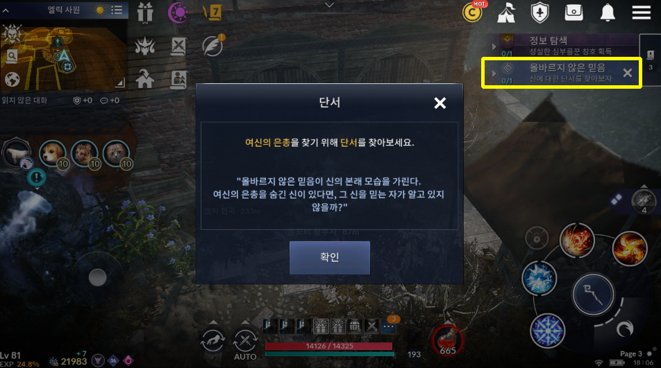 [검은사막 모바일 퀘스트] 올바르지 않은 믿음 - 신에 대한 단서를 찾아보자