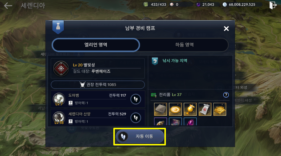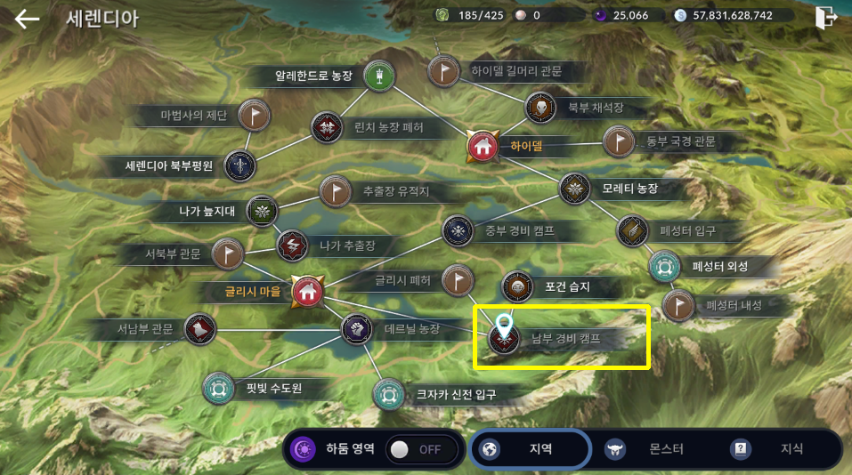 세렌디아 자치령 → 남부 경비 캠프로 이동합니다.