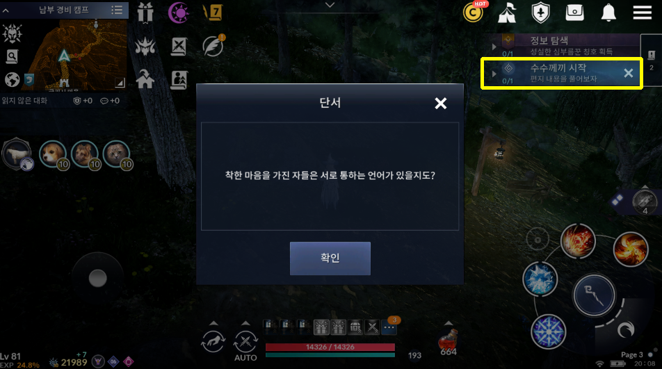 [검은사막 모바일 퀘스트] 수수께끼 시작 - 편지 내용을 풀어보자