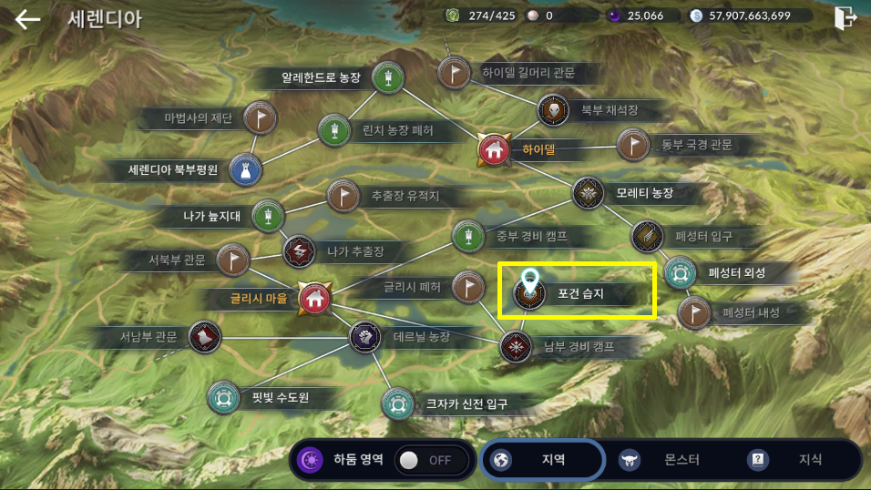 단서 세렌디아 포건 지역을 조사하여, 수상한 곳이 없는지 찾아보세요. |