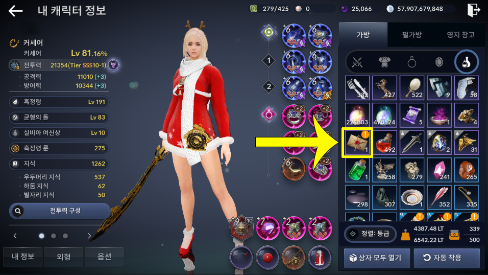 가방에 '첫 번째 편지 봉투' 열어 확인하세요.