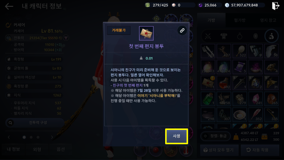 '첫 번째 편지 봉투 - 친구의 편지 봉투를 열어보자' 퀘스트가 완료되었습니다.