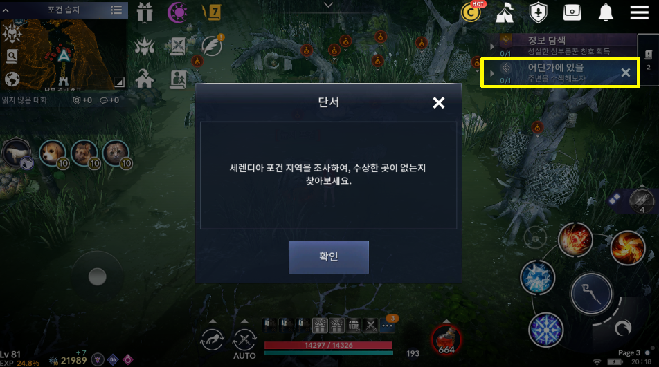 [검은사막 모바일 퀘스트] 어딘가에 있을 - 주변을 수색해보자