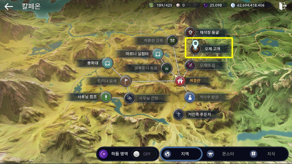 칼페온 동남부 직할령 → 오제 고개