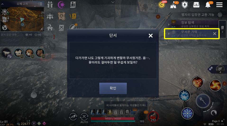 [검은사막 모바일 퀘스트] 무서운 기억 - 친구의 부탁을 들어주자