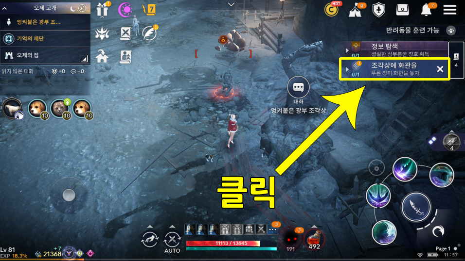 초록색 느낌표를 클릭해서 퀘스트를 진행할 수 있습니다.