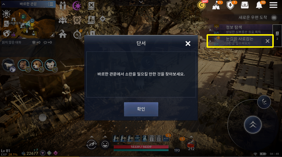 [검은사막 모바일 퀘스트] 눈길을 사로잡는 - 소란을 일으켜보자
