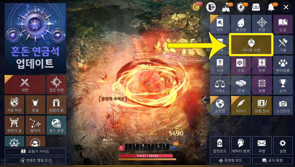 심연 장비 or 태고 장비 흑정령 기운 흡수하기 |