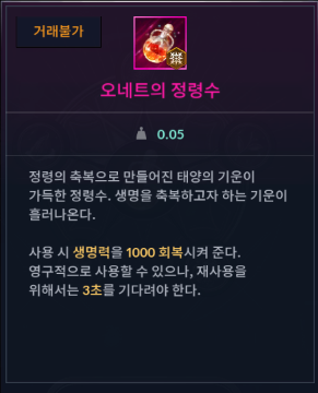 오네트의 정령수는 생명력을 1000 회복을 영구적으로 사용 가능한 보물입니다.