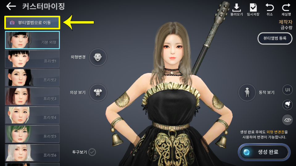 [뷰티앨범으로 이동]에서 유저들이 공유한 커스터마이징 적용할 수 도 있습니다.
