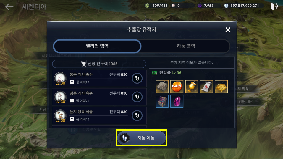 월드맵에서 세렌디아 자치령 → 추출장 유적지로 가봅시다.