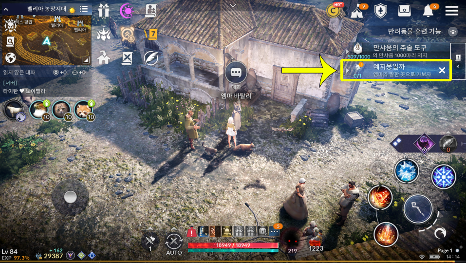[검은사막 모바일 퀘스트] 예지몽일까 - 엠마가 말한 곳으로 가보자