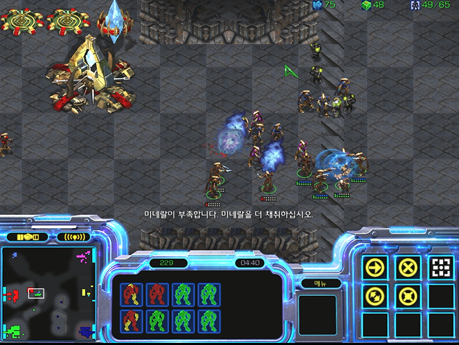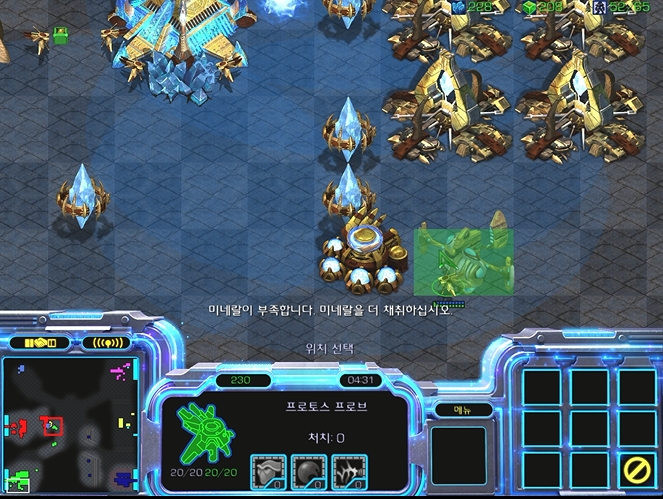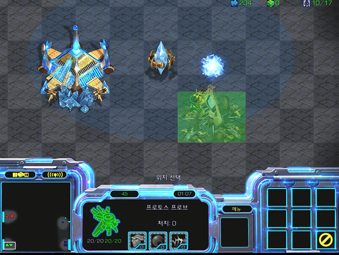 손 빠르신분은 질럿2개, 하이템플러2개로 가셔서 가스 캐는 일꾼도 지져주세요
