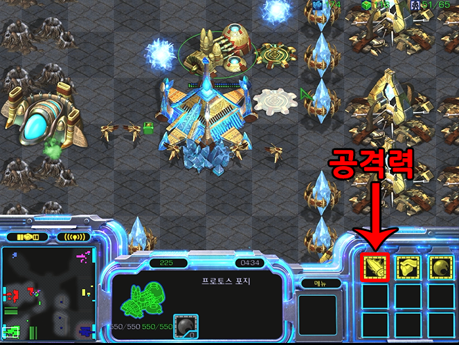 ④ 프로보(일꾼)하고 질럿은 꾸준히 생산하면서 파일런과 게이트웨이를 늘립니다