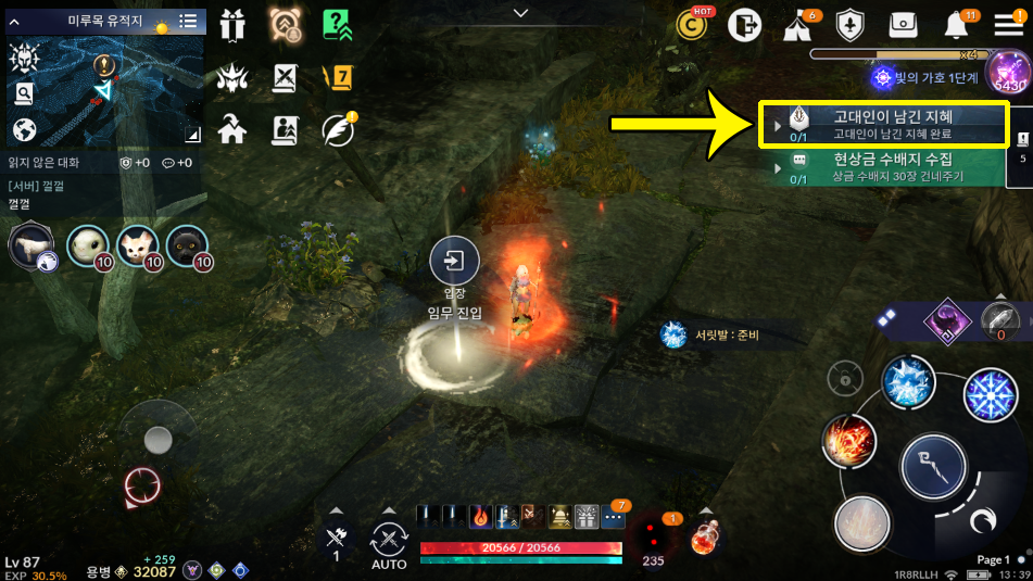 고대인이 남긴 지혜 퀘스트 클릭하면 입장할 수 있습니다