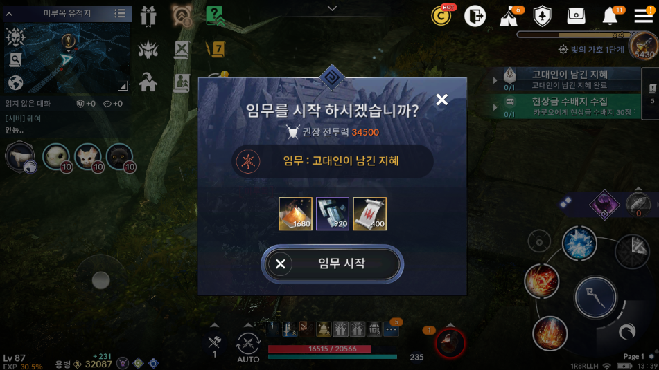 [검은사막 모바일 퀘스트] 고대인이 남긴 지혜 - 미루목을 돌려 빛을 모으자