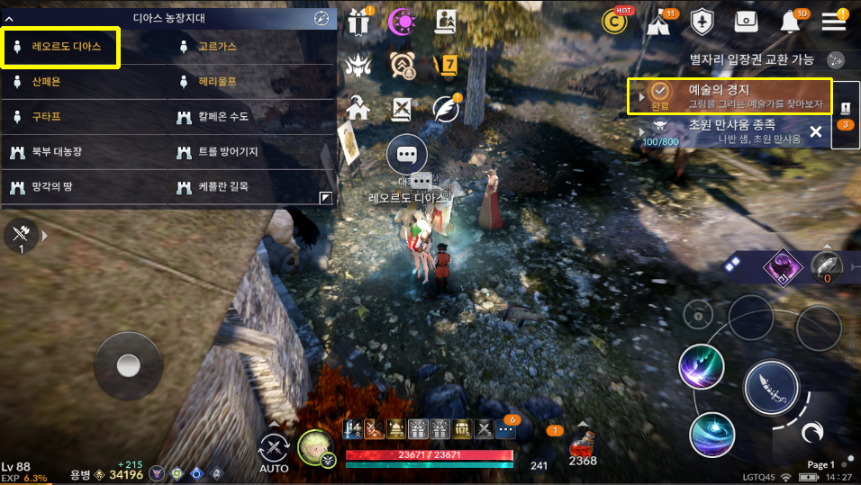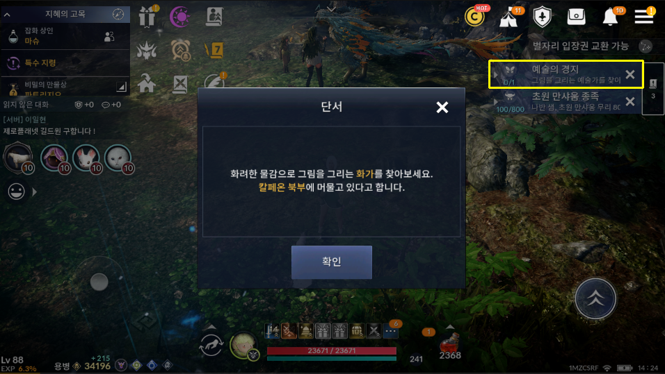 [검은사막 모바일 퀘스트] 예술의 경지 - 그림을 그리는 예술가를 찾아보자