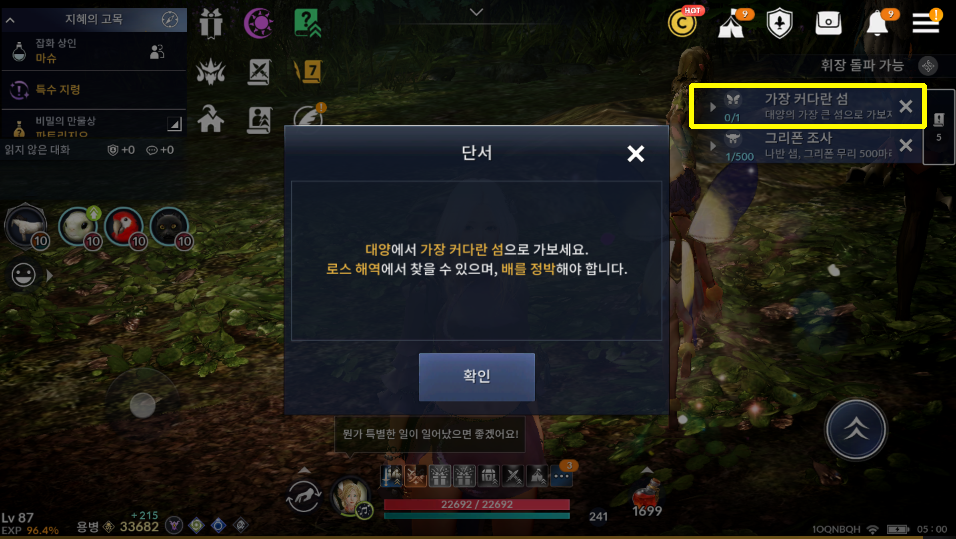 [검은사막 모바일 퀘스트] 가장 커다란 섬 - 대양의 가장 큰 섬으로 가보자