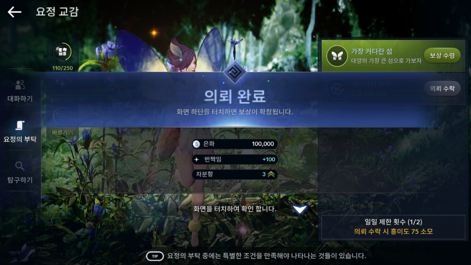요정의 부탁, 친절한 성격의 선명한 레이라 퀘스트입니다.