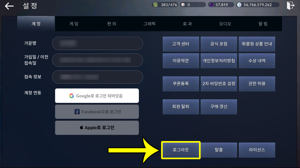 3. 설정에서 로그아웃하고 다시 로그인하면 채널 변경됩니다.