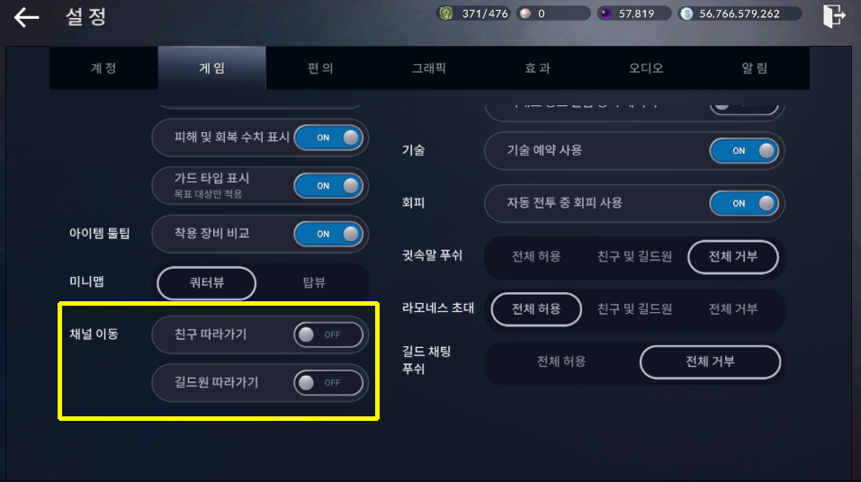 ※ 채널 이동이 안된다면 설정에서 채널이동 친구 따라가기, 길드원 따라가기 OFF로 바꿔주세요.