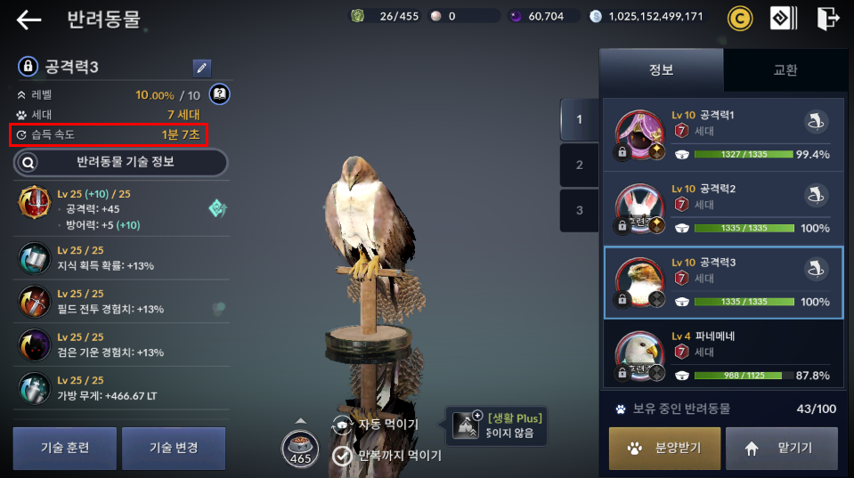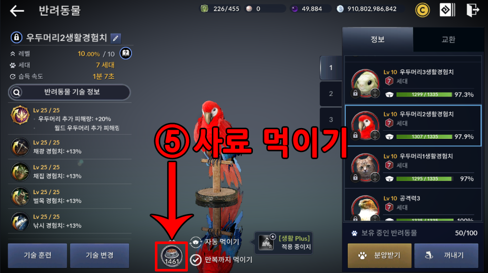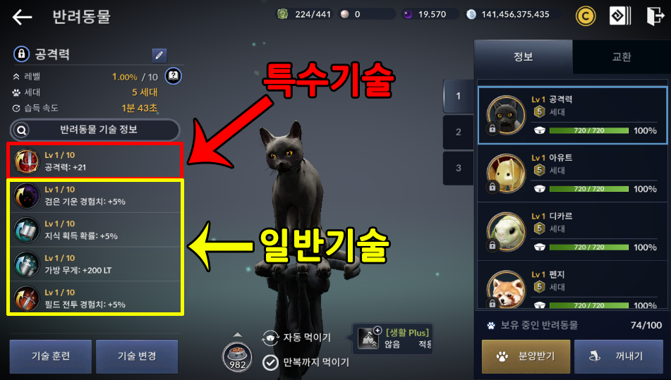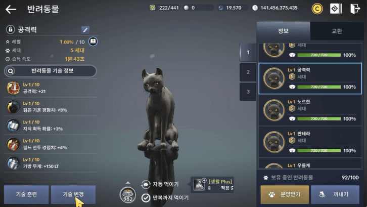펫 기술 변경하면 수치가 랜덤으로 뜨기 때문에 운이 필요합니다.