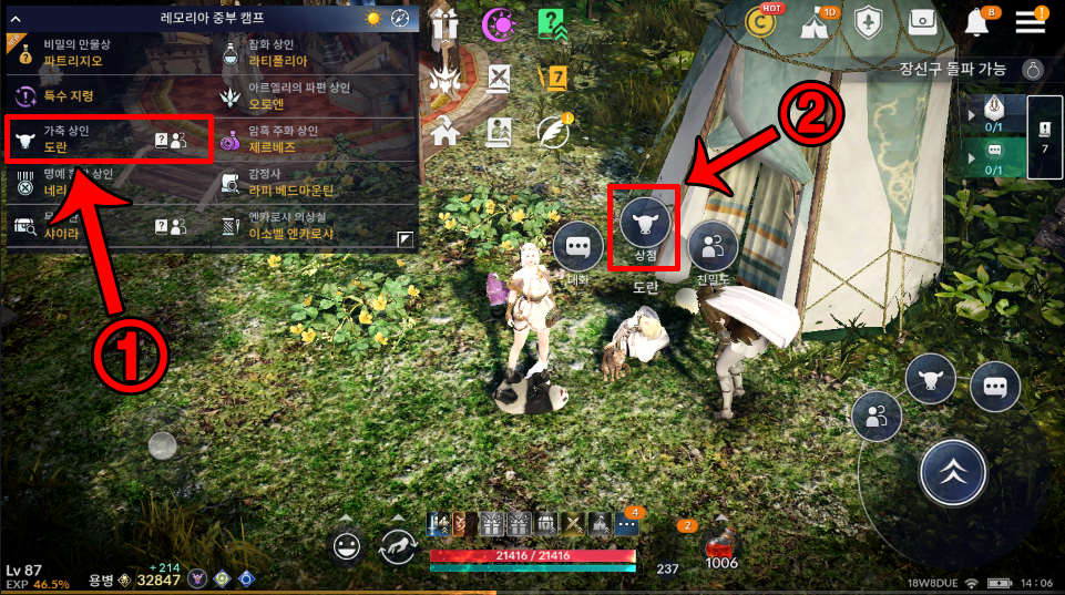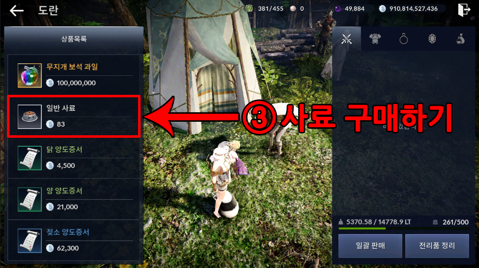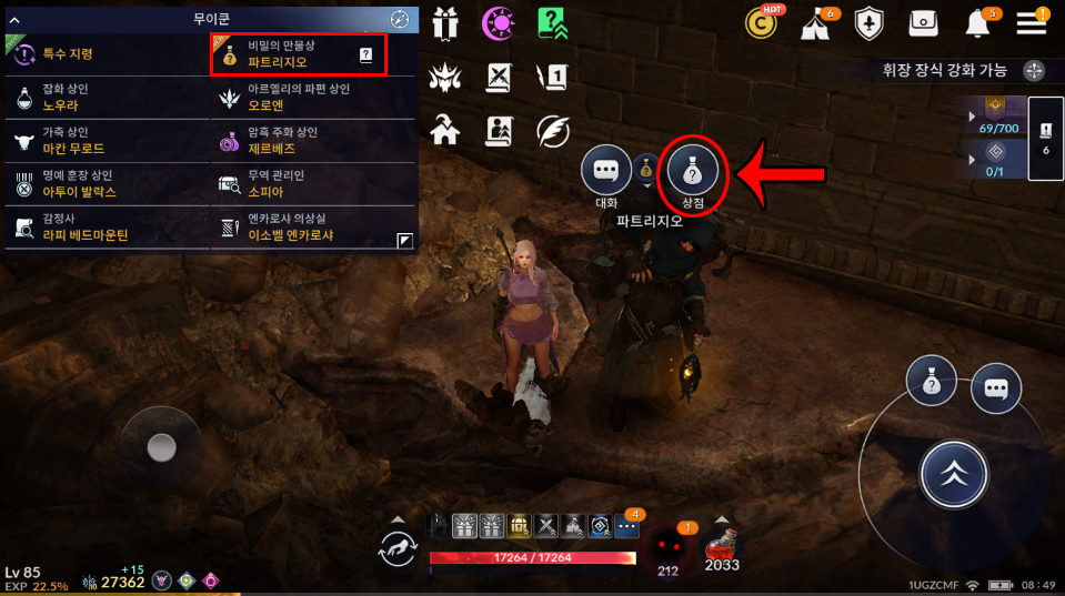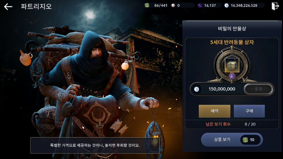 세번째, 마을 NPC 비밀의 만물상 파트리지오 상점에서 펫을 구매할 수 있습니다.