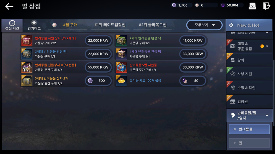 반려동물 5세대 + 반려동물 5세대(재물) = 기술 변경되면서 재물 받쳤던 반려동물은 사라집니다.