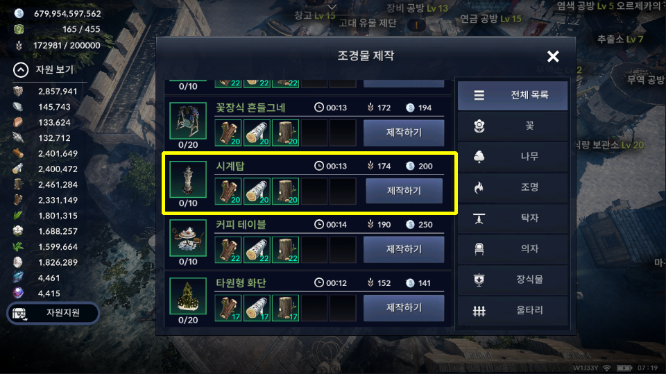 퀘스트를 터치하여 시계탑을 기부합니다.