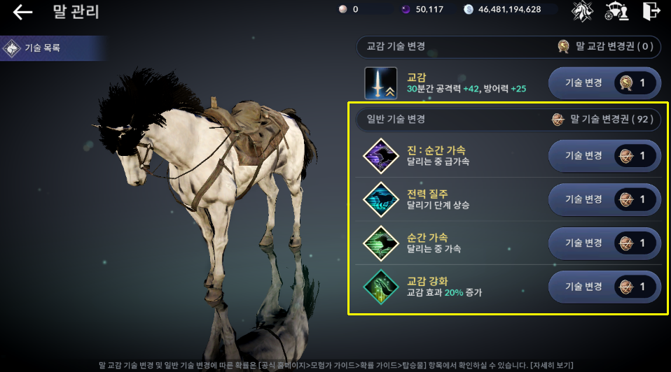 영지 마구간에서 말 관리에 들어가면 기술변경할 수 있습니다.