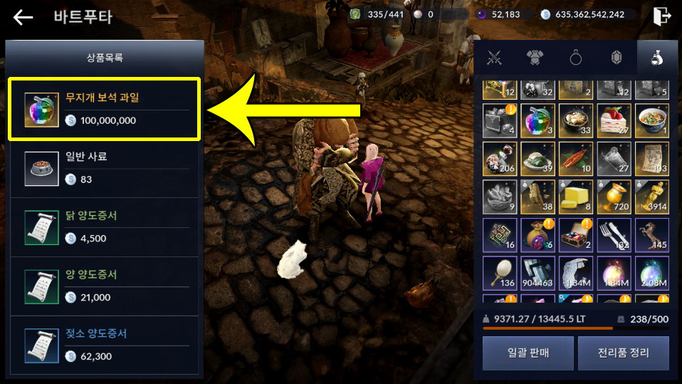 8세대 만들 때 들어가는 재료 '무지개 보석 과일'은 마을의 가축 상인에서 구매할 수 있습니다.