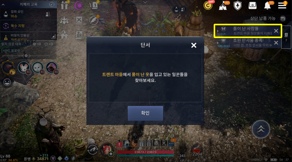 [검은사막 모바일 퀘스트] 풀이 난 사람들 - 트렌트 마을 일꾼들의 지혜를 엿보기