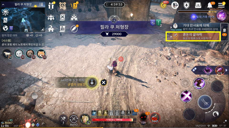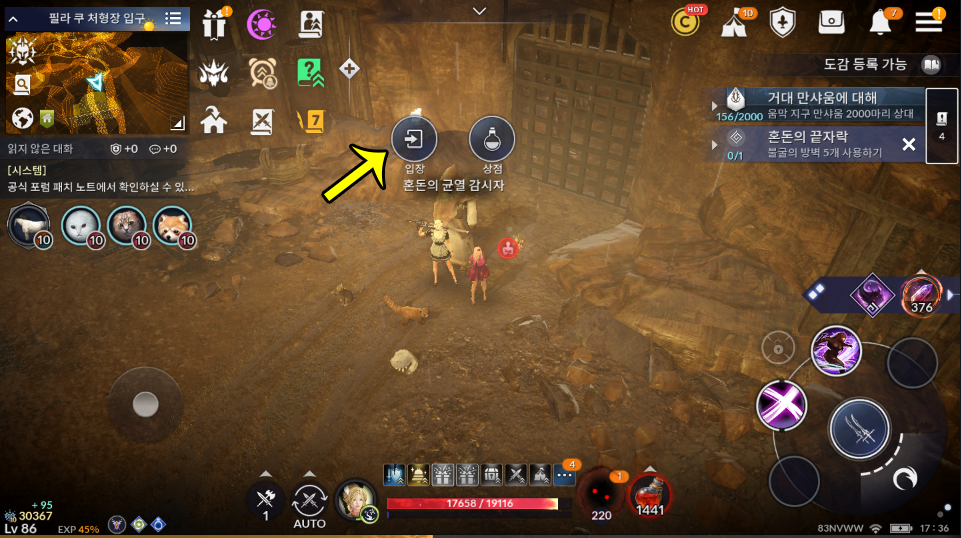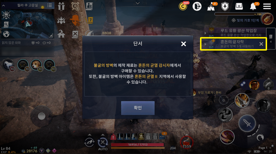 [검은사막 모바일 퀘스트] 혼돈의 끝자락 - 불굴의 방벽 5개 사용하기