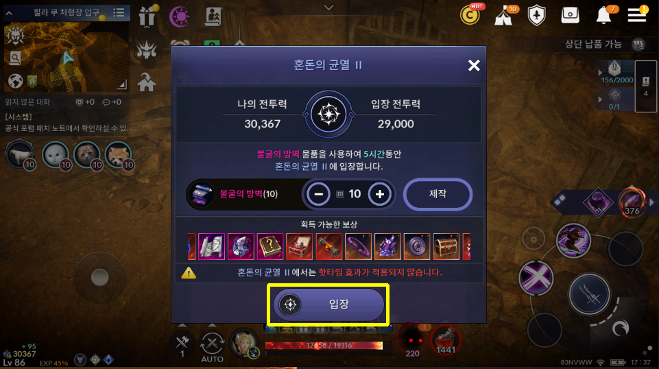 혼돈의 균열 감시자에서 입장에 들어갑니다.