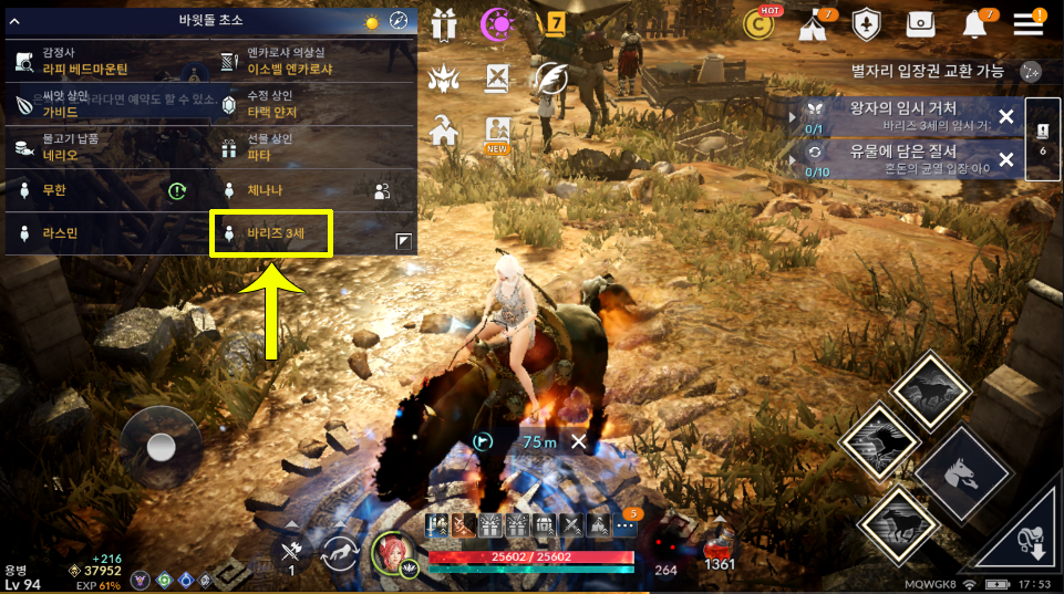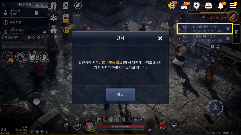 [검은사막 모바일 퀘스트] 왕자의 임시 거처 - 바리즈 3세의 임시 거처로 가보자