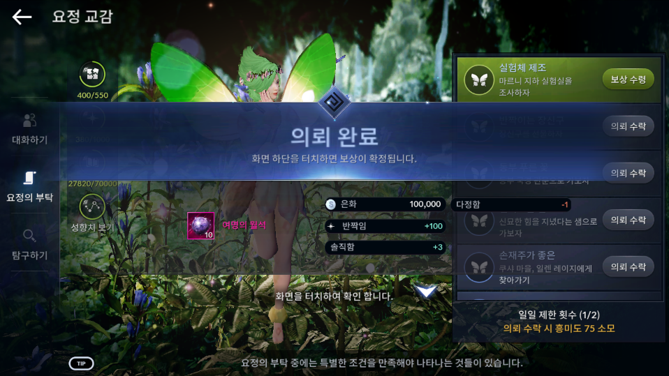 요정의 부탁, 침착한 성격의 영롱한 레이라 퀘스트입니다.