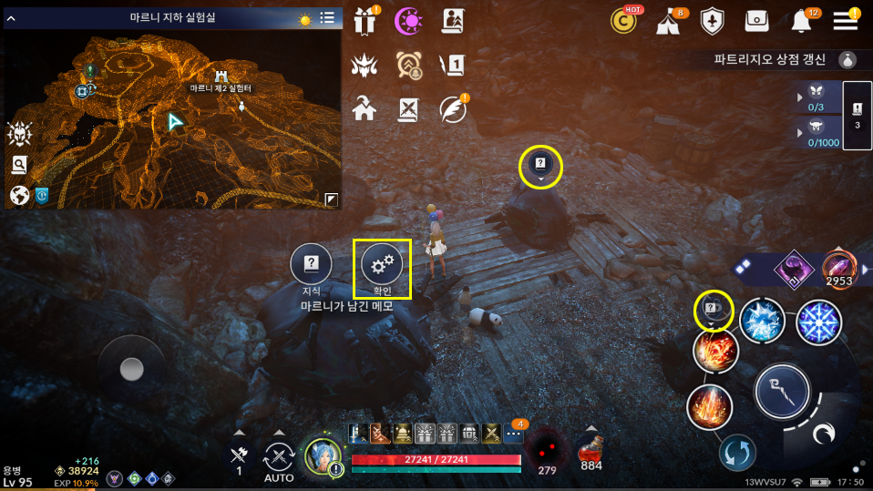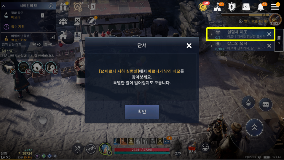 [검은사막 모바일 퀘스트] 실험체 제조 - 마르니 지하 실험실을 조사하자