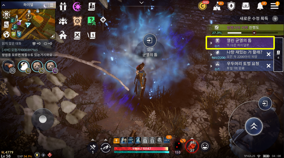 [검은사막 모바일 퀘스트] 열린 균열의 틈 - 또 다른 하이델로