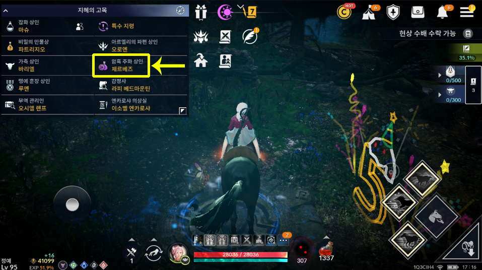 암흑 주화 상인 제르베즈 앞에 빨간색으로 빛나는 원으로 갑니다.