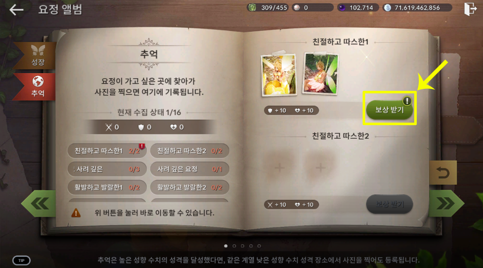 모두 하셨다면 보상 받기를 누르세요.