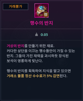 거래소 물품 정산 수수료가 5% 감면되는 보물입니다.