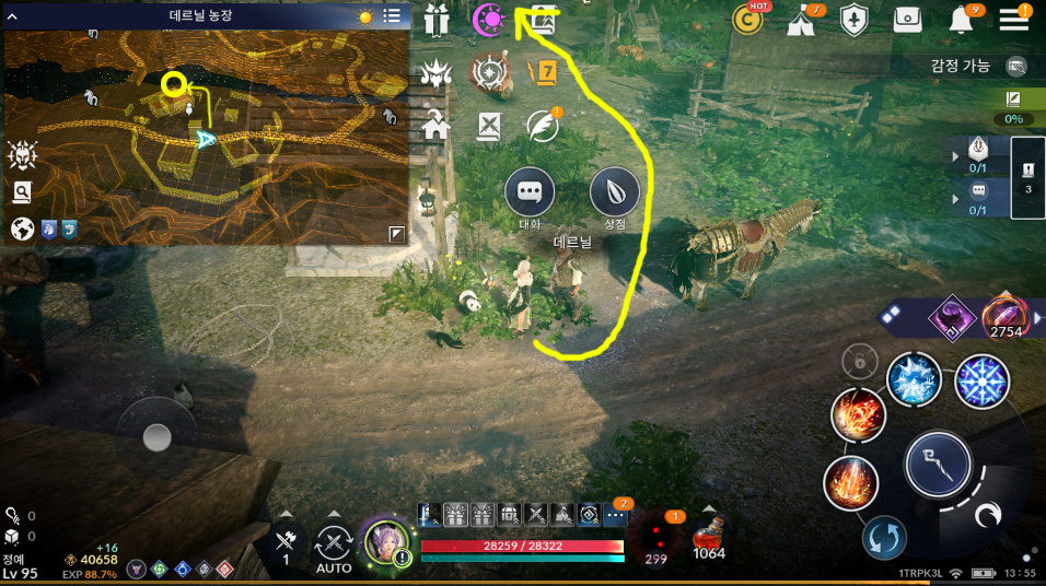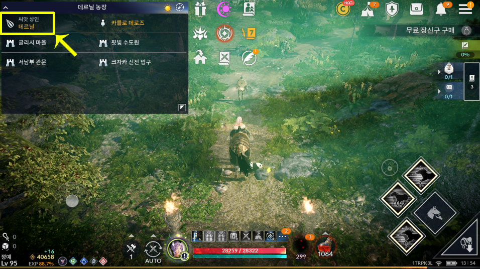 씨앗 상인 데르닐을 클릭해서 앞으로 갑니다.
